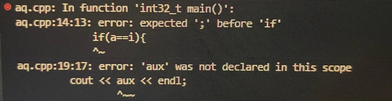If an error is found in the code during any of the compilation phases, one of the compiler's main tasks is to return a detailed error report to the programmer, indicating the type of error, the line where it occurred, and, whenever possible, suggestions for correction. This allows the developer to identify and fix problems quickly, preventing simple errors from turning into more complex failures during program execution. In addition, modern compilers usually differentiate between serious errors and warnings, helping the programmer to prioritize corrections and write more efficient and safer code. In the image below, the compiler returns the type of error, the line it is on, and even how to fix it.