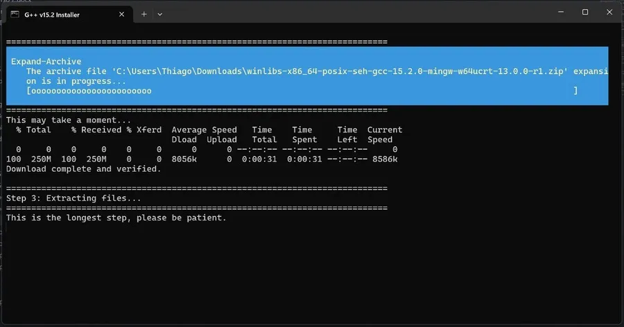 MinGW-w64 is the compilation tool we will use to compile our C programs. To simplify the process, we will use a .bat file, which is responsible for automatically performing the necessary installation and configuration ๐. To do this: